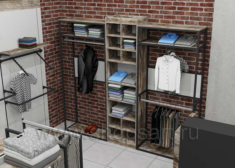 Торговое оборудование для магазинов одежды на основе коллекции ЛОФТ