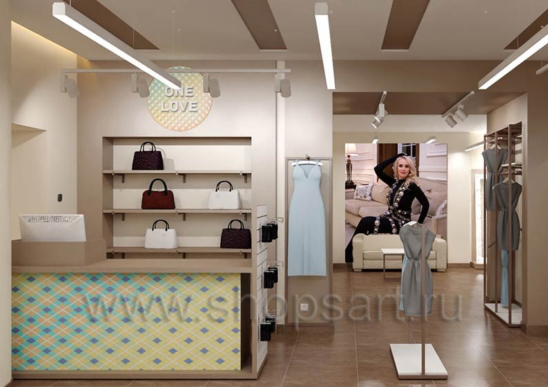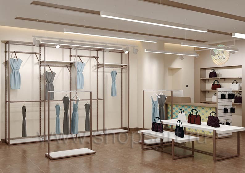 На этой странице Вы можете ознакомиться с дизайном интерьера и дизайном торговой мебели магазина одежды “ONE LOVE”, находящегося в ТРЦ «РИО», город Москва, Ленинский проспект, дом 109, на основе коллекции оборудования для одежды «КЛАССИЧЕСКИЙ ЛОФТ». Разработала дизайн магазина одежды и дизайн торговой мебели в стиле ЛОФТ компания «Искусство интерьеров». Узнать больше о наших коллекциях мебели для магазинов одежды Вы можете на странице оборудования для одежды.