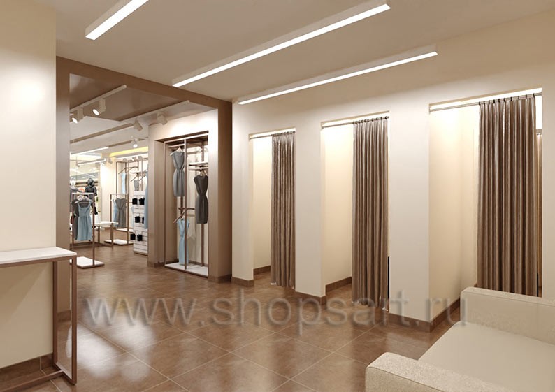 Выше мы говорили про дизайн торгового зала. Может возникнуть вопрос о том, необходимо ли выполнять внутреннее оформление кабин для примерки. Здесь самое главное – удобство и функциональность. Что касается дизайна этих конструкций, то лучше отдавать предпочтение неброским решениям. При этом важное значение имеет освещение внутри примерочных.