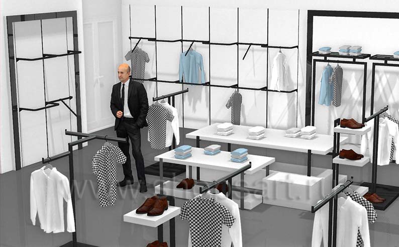 Подбор необходимого оборудования для одежды следует выполнять на этапе разработки дизайн-проекта магазина. При изготовлении эксклюзивного оборудования для магазина учитывается ряд нюансов: