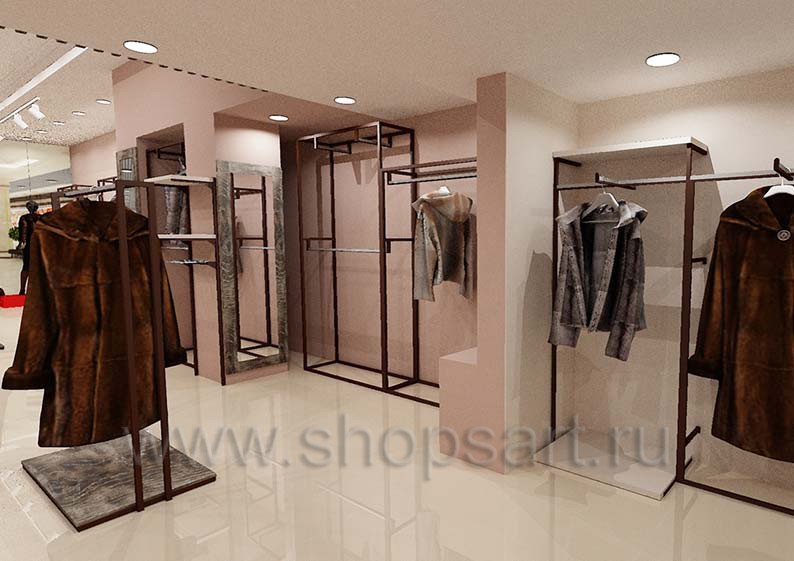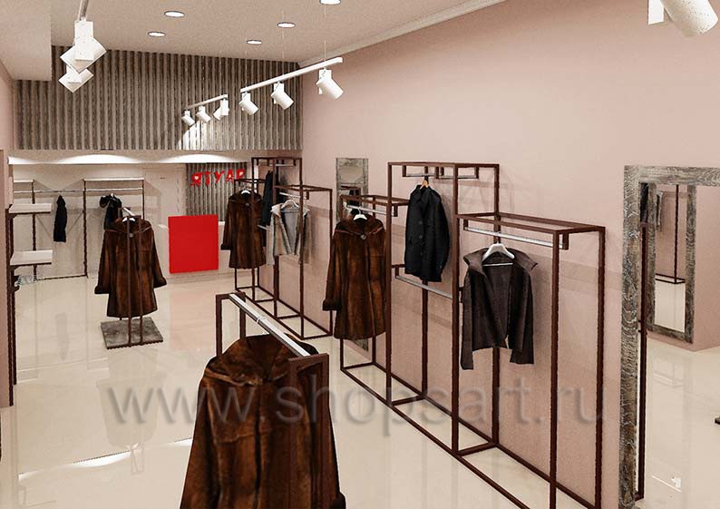 Если вам нужен индивидуальный мебельный стиль лофт для одежды, наши специалисты готовы взяться за разработку оригинальных моделей торгового оборудования согласно вашим предпочтениям. Необычный дизайн помещения выигрышно выделит его среди других салонов шуб.