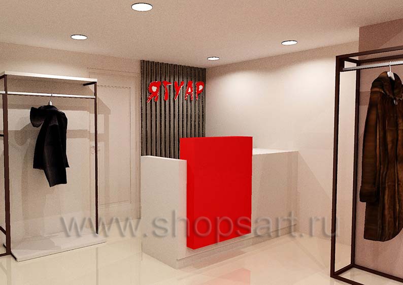 На этой странице Вы можете ознакомиться с дизайном интерьера и дизайном торговой мебели магазина шуб “Ягуар”, город Калуга, на основе коллекции торговой мебели «КЛАССИЧЕСКИЙ ЛОФТ». Разработала дизайн магазина верхней одежды и торговой мебели в стиле ЛОФТ компания «Искусство интерьеров». Узнать больше о наших коллекциях мебели для магазинов одежды Вы можете на странице торгового оборудования для магазинов одежды.