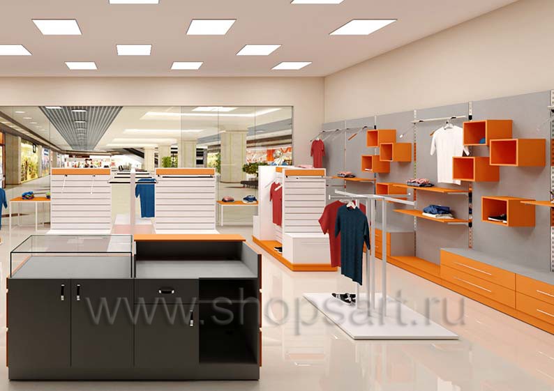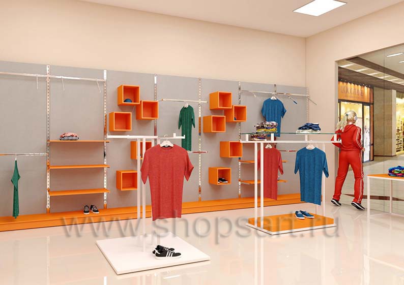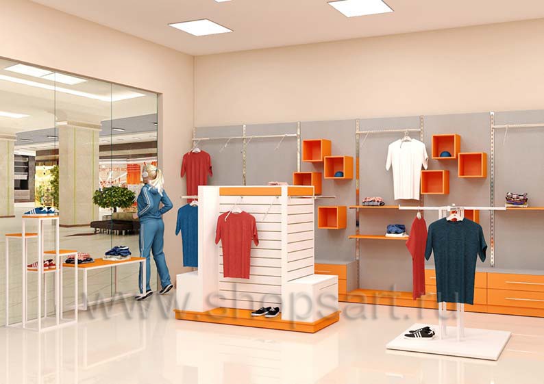 Торговое оборудование для магазинов спортивной одежды на основе коллекции АТЛАНТ