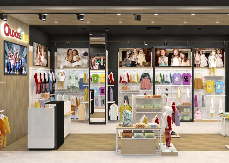 На этой странице Вы можете ознакомиться с дизайном интерьера для сетевых магазинов детской одежды «OLDOS KIDS», находящихся в ТРЦ “Каширская Плаза”, город Москва и в ТРК “Красный Кит”, город Мытищи, Московская область. Торговую мебель для магазинов, на основе коллекции торгового оборудования «BLACK STAR», поставила компания «Искусство интерьеров». Узнать больше о наших коллекциях мебели для детских магазинов Вы можете на странице торгового оборудования для одежды.