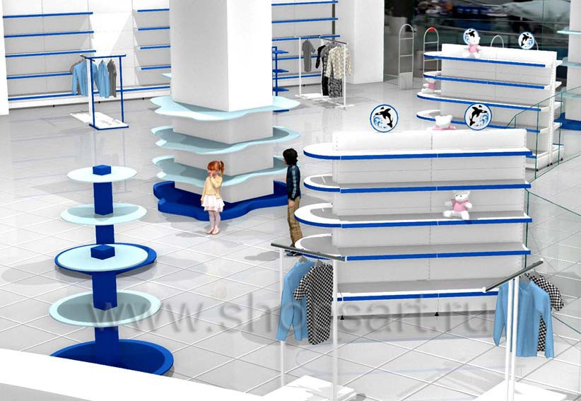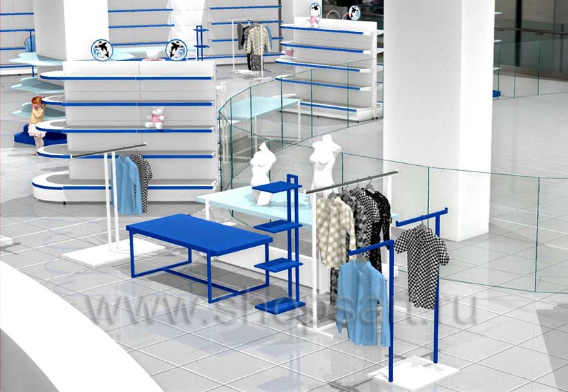 Металлические элементы покрывают порошковой краской. В оформлении магазинов используют материалы разных цветов с учетом заранее созданного дизайна. Выдерживается единая цветовая концепция. Размеры мебели определяются индивидуально, как и состав мебельного набора.