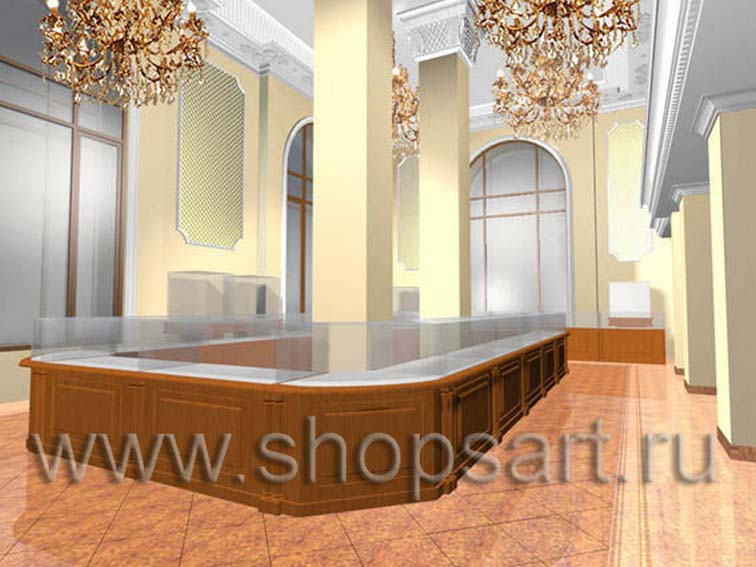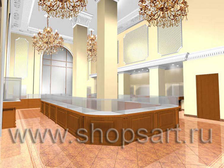 - Дизайн интерьера ювелирного магазина, г. Москва, пр. Мира, на основе коллекции торгового оборудования «КОРИЧНЕВАЯ КЛАССИКА». Дизайн 3.