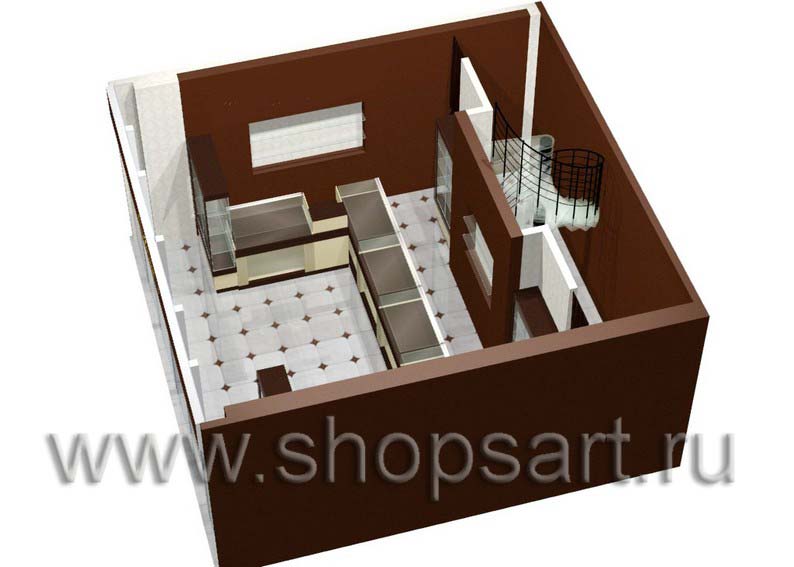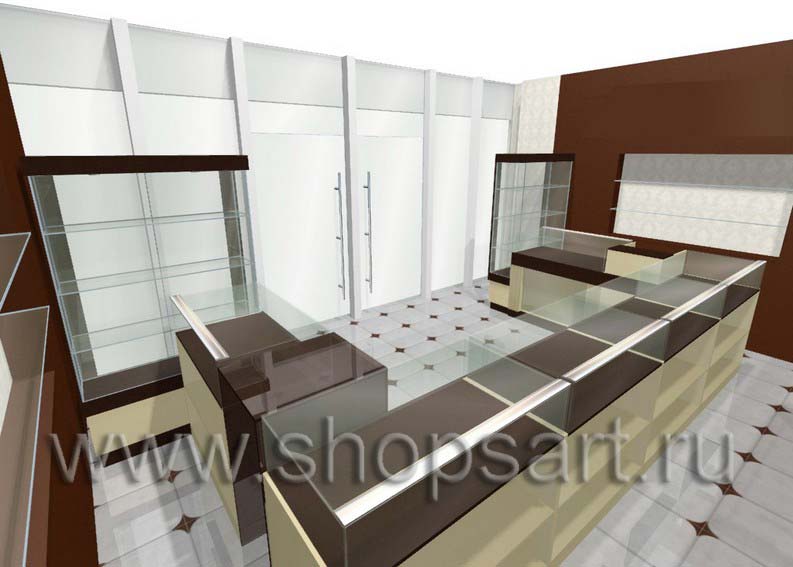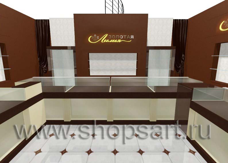 - Дизайн интерьера ювелирного магазина “Золотая Лилия”, г. Москва, на основе коллекции торгового оборудования «ЭТАЛОН». Дизайн 3.
