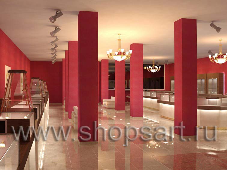 На этой странице Вы можете ознакомиться с первым дизайном интерьера, выполненным в красном цвете отделки помещения ювелирного магазина «Золото Якутии», находящегося в городе Якутск, на основе коллекции торгового оборудования «КОФЕ С МОЛОКОМ». Разработала дизайн магазина и дизайн торговой мебели компания «Искусство интерьеров». Узнать больше о наших коллекциях мебели для ювелирных магазинов Вы можете на странице торгового оборудования для ювелирных магазинов.