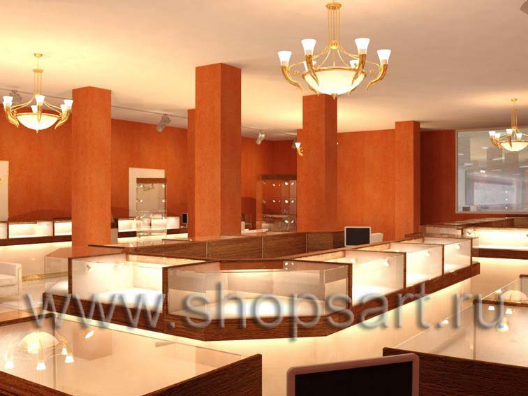 - Дизайн интерьера ювелирного магазина “Золото Якутии”, г. Якутск, на основе коллекции торгового оборудования «КОФЕ С МОЛОКОМ». Дизайн 9.