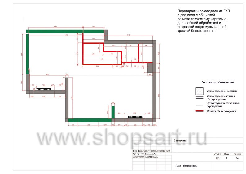 2. Стены возводятся из гипсокартона с дальнейшей обработкой и окраской водоэмульсионной краской: