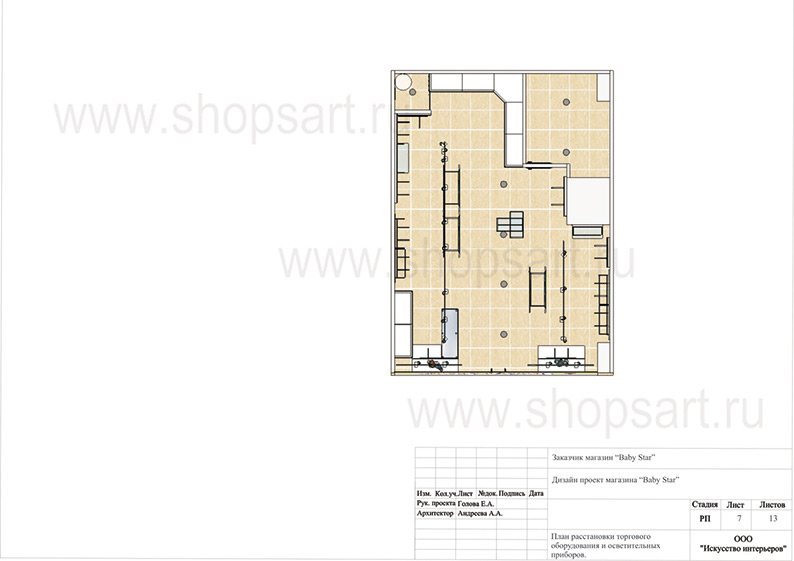 - 7. План расстановки торгового оборудования и осветительных приборов.