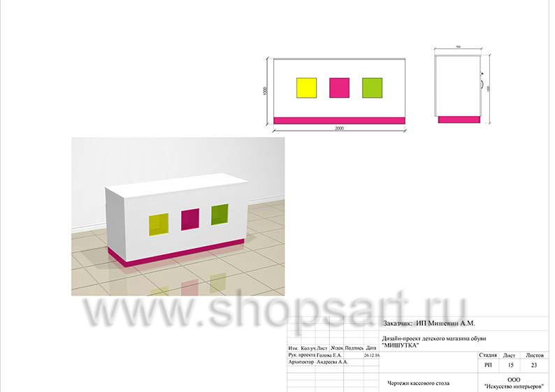 Дизайнеры компании ООО «Искусство интерьеров» разработали линию торговой мебели, отвечающей критериям безопасности и качества. Коллекция «Карамель» производится из экологического сертифицированного сырья. Преимуществом конструкций также является эстетичный вид и высокие прочностные качества. Заказать торговое оборудование можно в любых размерах и оттенках. Если вас интересует вопрос: сколько стоит проект магазина, — то здесь ответ не может быть однозначным. Все зависит от сложности разработки и ряда других факторов, о которых вам расскажут наши менеджеры. На данной странице мы представили для ознакомления дизайн-проект детского магазина Мишутка город Самара на основе торгового оборудования «Карамель». Это лишь одна из многочисленных работ наших специалистов. Обращайтесь к нам, и проект вашего магазина будет не менее оригинален!