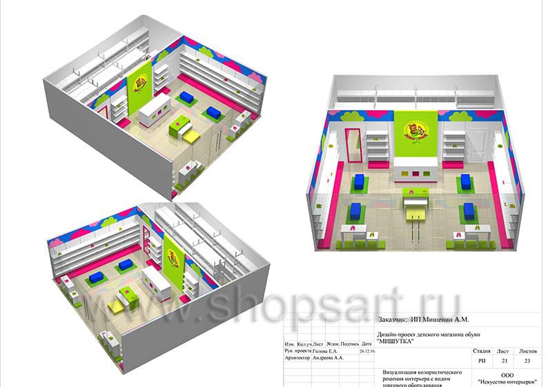 Дизайн проект магазина, по продаже детской обуви, разработан в соответствии с действующими технологическими и санитарными нормами и правилами.