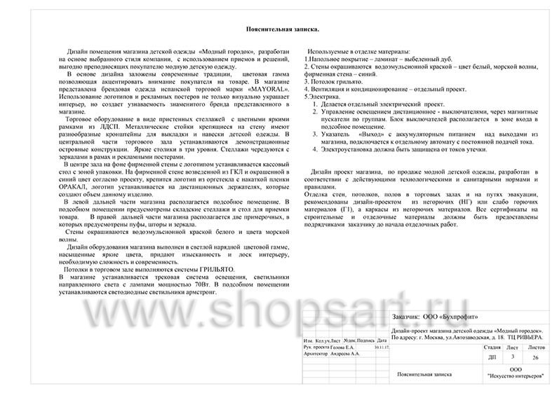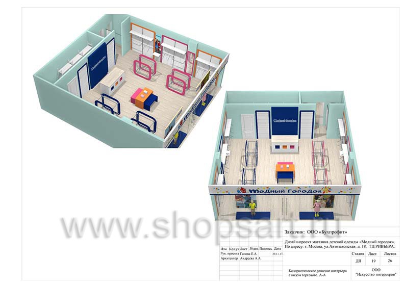 Дизайн проект магазина, по продаже модной детской одежды, разработан в соответствии с действующими технологическими и санитарными нормами и правилами.