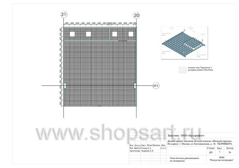 Потолки в торговом зале монтируются из системы “ГРИЛЬЯТО”.