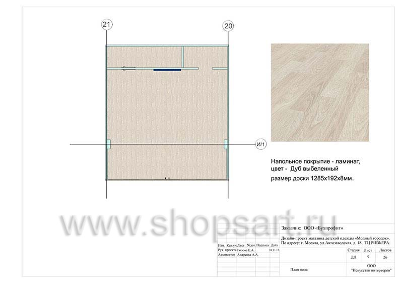 1. Напольное покрытие выполнено из ламината “Выбеленный дуб”.