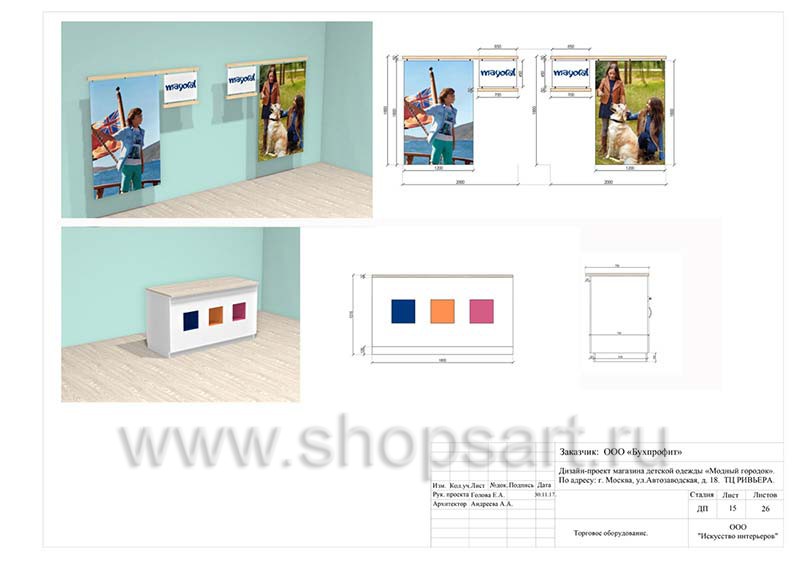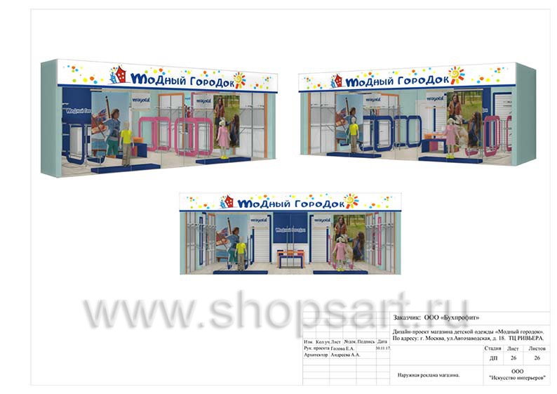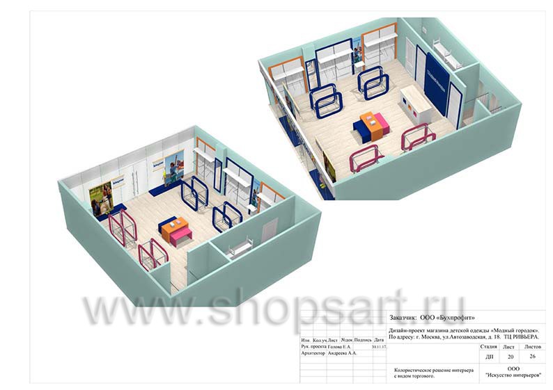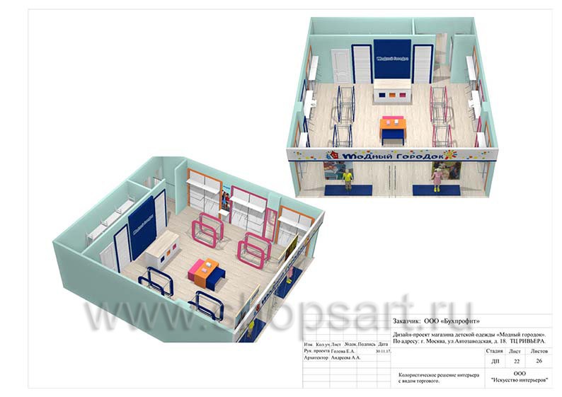 На этой странице Вы можете ознакомиться с дизайн-проектом детского магазина «Модный Городок», находящегося в ТЦ “Ривьера”, город Москва, улица Автозаводская, дом 18, на основе коллекции торгового оборудования «ГОЛУБАЯ ЛАГУНА». В магазине представлена брендовая одежда испанской торговой марки «MAYORAL». Разработала дизайн-проект магазина, дизайн интерьера и дизайн торговой мебели компания «Искусство интерьеров». Узнать больше о наших коллекциях оборудования для детских магазинов Вы можете на странице торгового оборудования для детских магазинов.