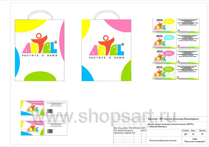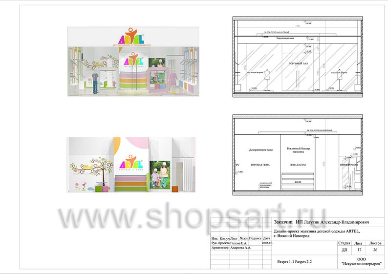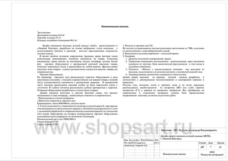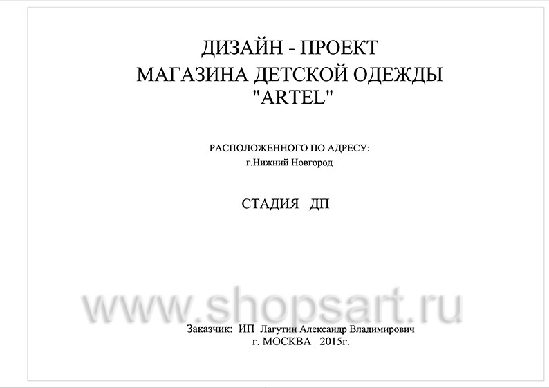 Дизайн проект магазина «АRTEL» по продаже детской одежды, разработан в соответствии с действующими технологическими и санитарными нормами и правилами.