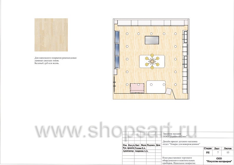 - 7. План расстановки торгового оборудования и осветительных приборов.