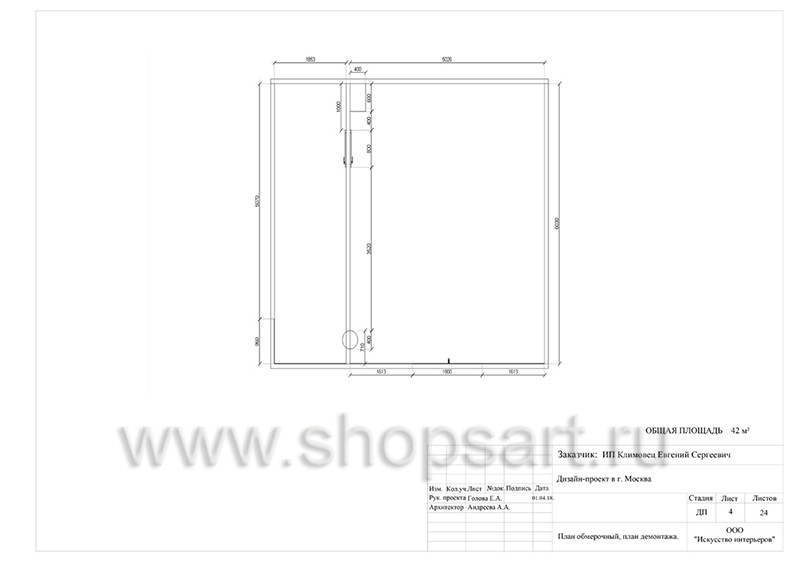 - 4. Первоначальный план магазина в размерах и план демонтажа.