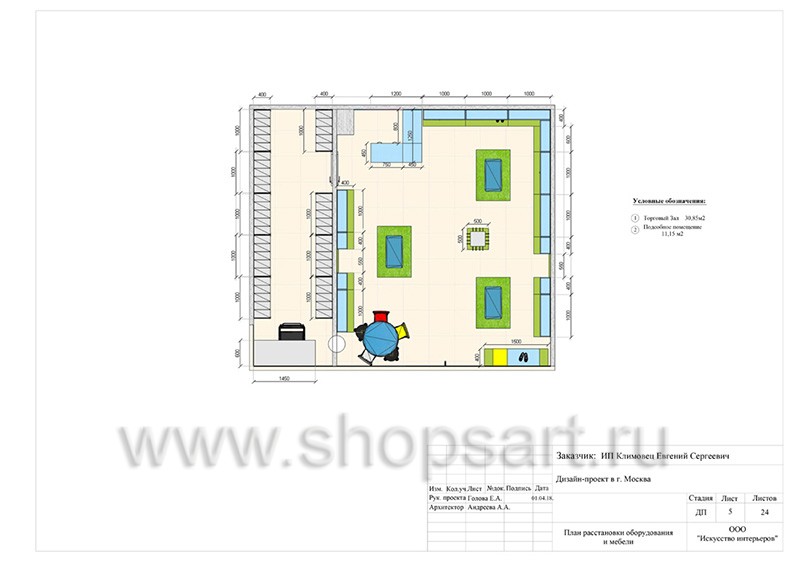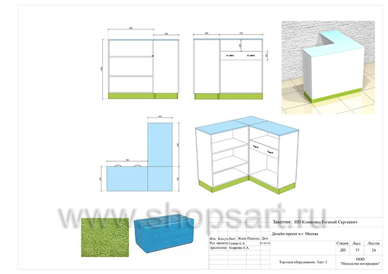18. Колористическое решение интерьера с видом торгового оборудования. Лист 5.