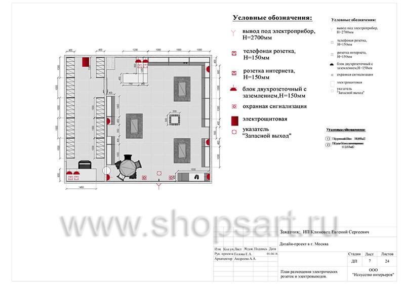 5.3. Указатель «Выход», с аккумуляторным питанием над выходами из магазина, подключается к отдельному автомату с постоянной подачей тока.