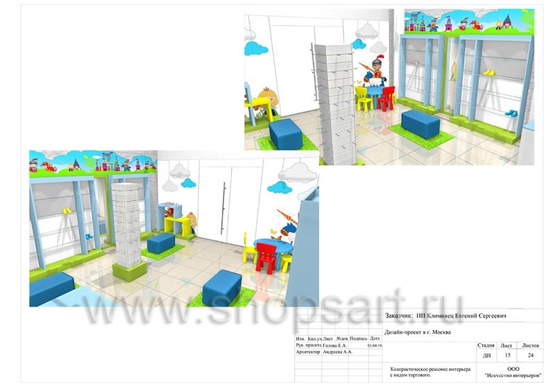 Дизайн проект детского магазина по продаже обуви, разработан в соответствии с действующими технологическими и санитарными нормами и правилами.