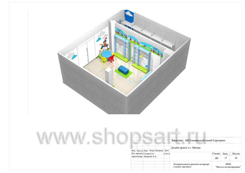 17. Колористическое решение интерьера с видом торгового оборудования. Лист 4.