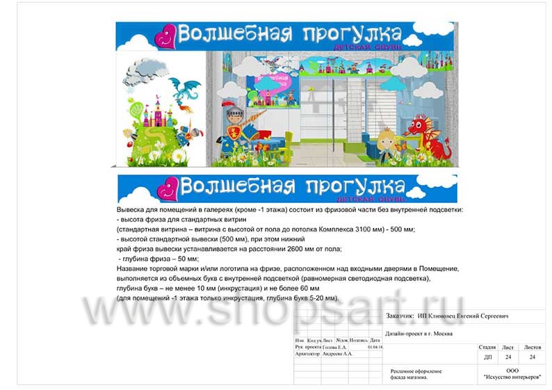 Дизайн–проект детского магазина обуви «ВОЛШЕБНАЯ ПРОГУЛКА», расположенного по адресу: г. Москва, Варшавское ш., д.87Б, ТДЦ “Варшавский”.