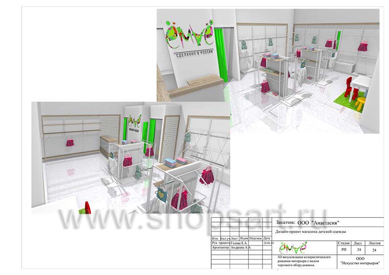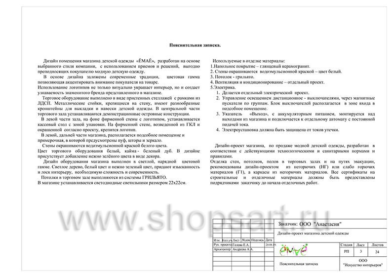 Дизайн-проект магазина, по продаже модной детской одежды, разработан в соответствии с действующими технологическими и санитарными нормами и правилами.