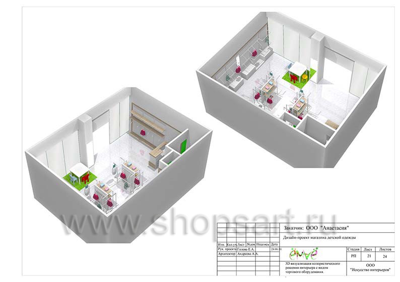 21. Визуализация колористического решения интерьера с видом торгового оборудования 1.