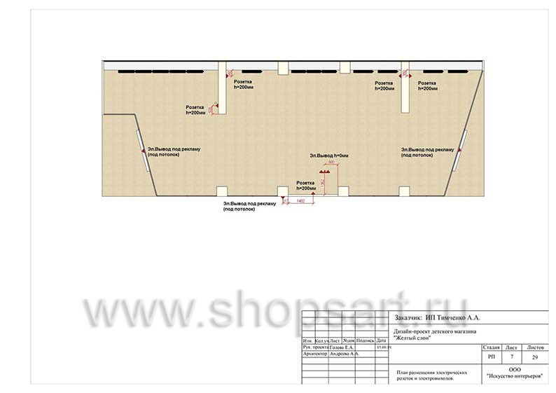 - 7. План размещения электрических розеток и электровыводов.