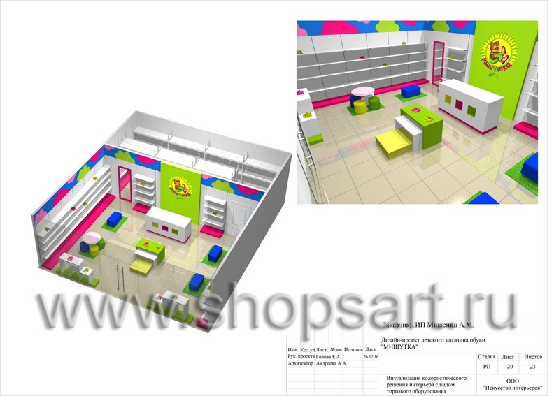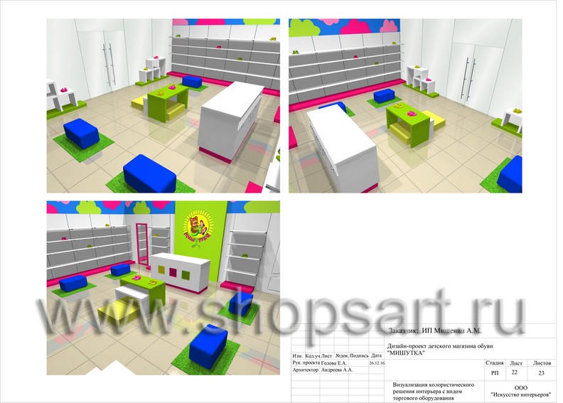 Дизайн интерьера магазинов детской обуви на основе коллекции КАРАМЕЛЬ