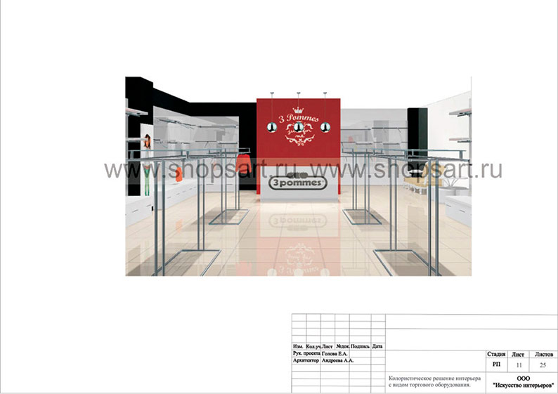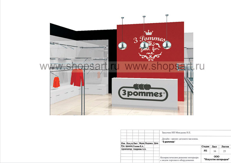 На этой странице Вы можете ознакомиться с дизайн-проектом для магазина детской одежды «3 pommes», находящегося в ТРЦ “Агора”, город Сургут, на основе коллекции торгового оборудования «ЧЕРНО-БЕЛАЯ КЛАССИКА». Разработала дизайн-проект магазина, дизайн интерьера и дизайн торговой мебели компания ООО «Искусство интерьеров». Узнать больше о наших коллекциях мебели для магазина одежды Вы можете на странице оборудования для одежды.
