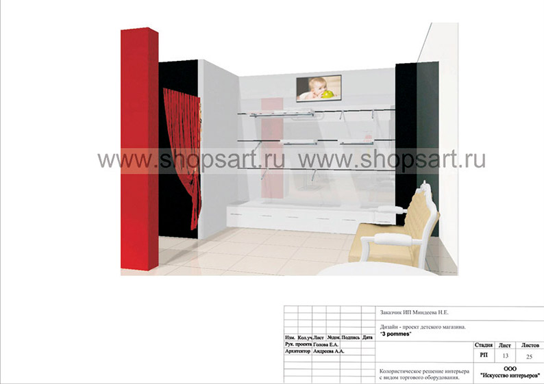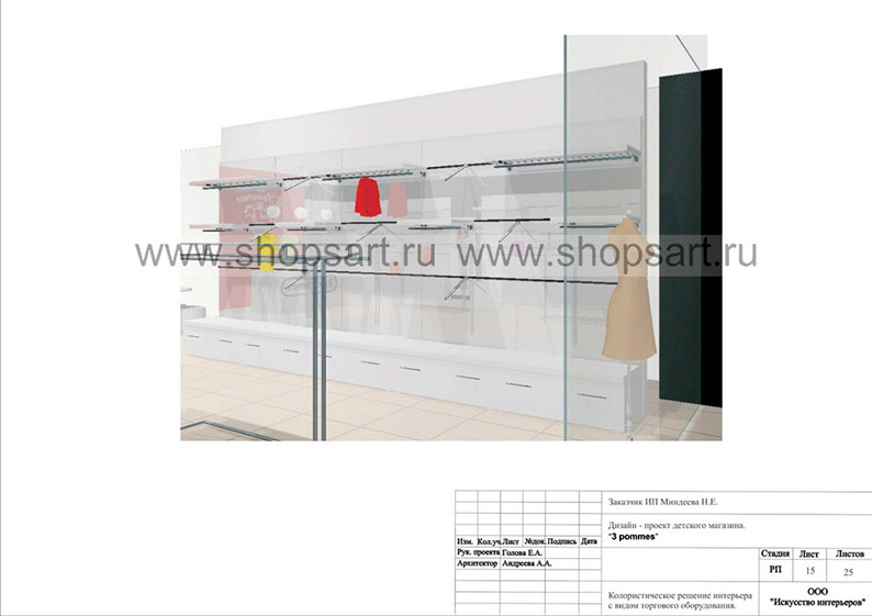 Дизайн-проект магазина по продаже детской одежды, разработан в соответствии с действующими технологическими и санитарными нормами и правилами.