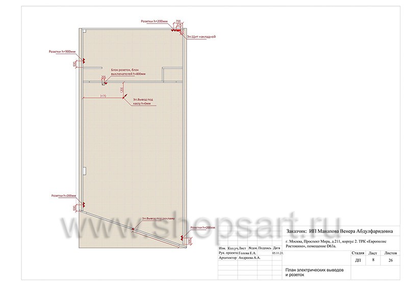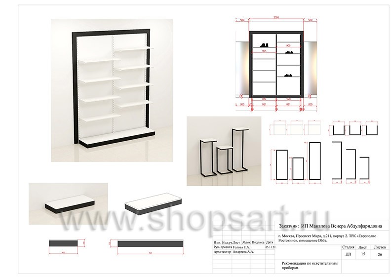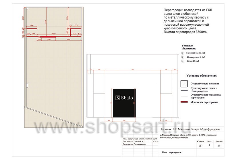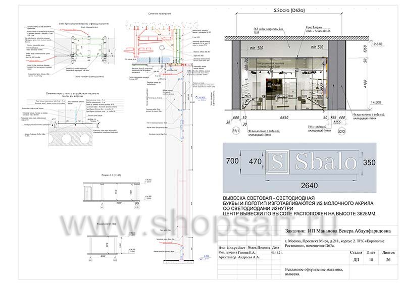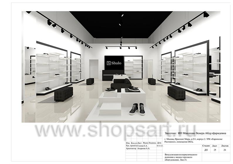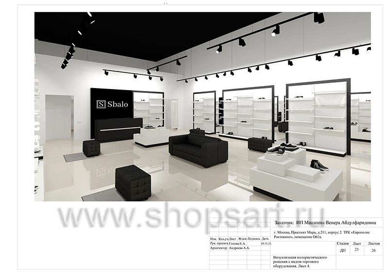 Дизайн–проект бутика модной одежды и обуви «SBALO», расположенный по адресу г. Москва, Проспект Мира, д.211, корпус 2, ТРК «Европолис Ростокино», помещение D63а.