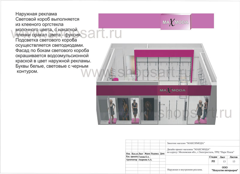 На этой странице Вы можете ознакомиться с дизайн-проектом для магазина одежды «Maximoda», находящегося в ТРЦ «Парк Плаза», город Электросталь, Московской области, на основе коллекции торгового оборудования «ЧЕРНО-БЕЛАЯ КЛАССИКА». Разработала дизайн-проект магазина, дизайн интерьера и дизайн торговой мебели компания ООО «Искусство интерьеров». Узнать больше о наших коллекциях мебели для магазина одежды Вы можете на странице оборудования для одежды.