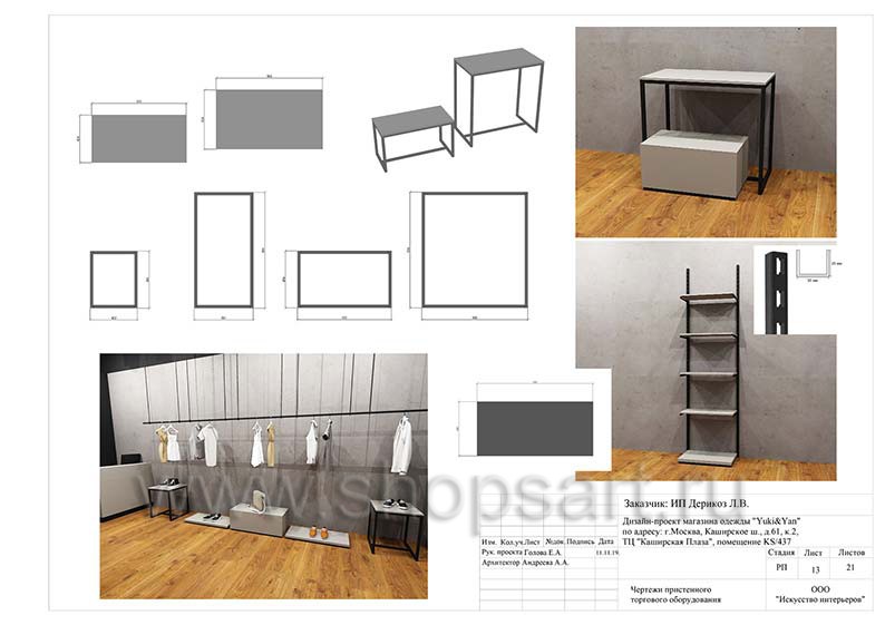На этой странице Вы можете ознакомиться с дизайн-проектом магазина одежды «Yuki & Yan», находящегося в ТРЦ «Каширская плаза», город Москва, Каширское шоссе, д. 61Г, на основе коллекции торговой мебели «ЛОФТ». Разработала дизайн-проект магазина, дизайн интерьера и дизайн торговой мебели компания «Искусство интерьеров».