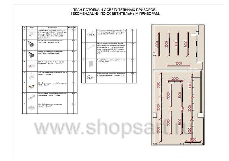9. План расстановки торгового оборудования и освещения