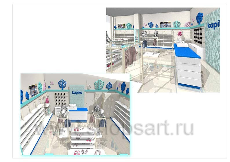 На этой странице Вы можете ознакомиться с дизайн-проектом для сетевого детского магазина «Kapika», находящегося в ТЦ “Горизонт”, город Ростов-на-Дону, проспект Михаила Нагибина, дом 32, на основе коллекции торгового оборудования «РАДУГА». Разработала дизайн-проект магазина, дизайн интерьера и дизайн торговой мебели компания «Искусство интерьеров». Узнать больше о наших коллекциях мебели для детских магазинов Вы можете на странице детского торгового оборудования.