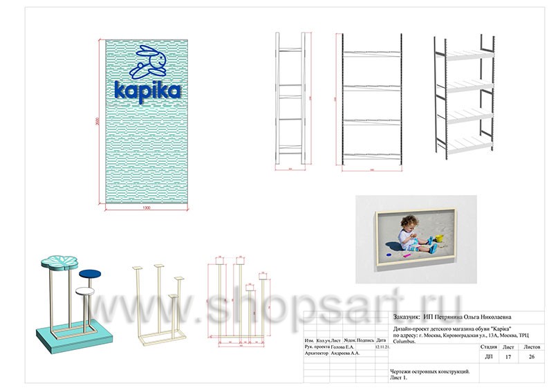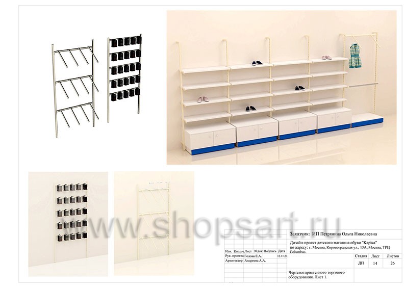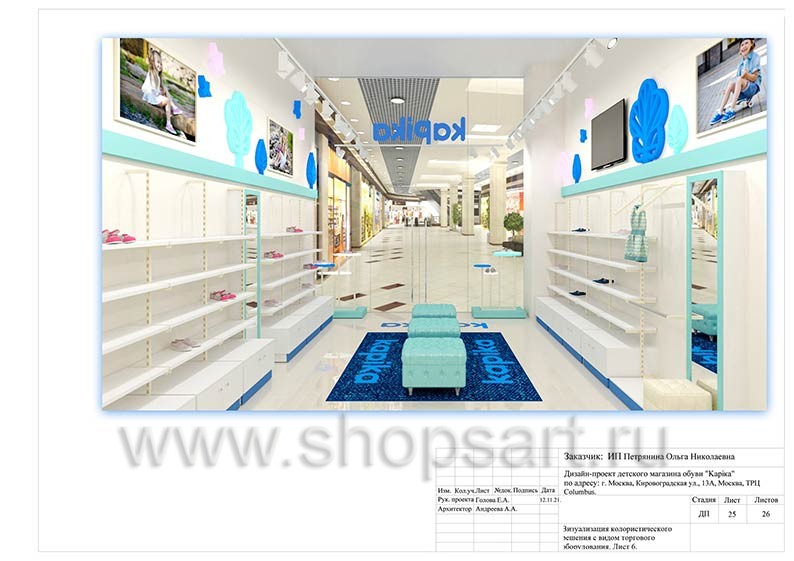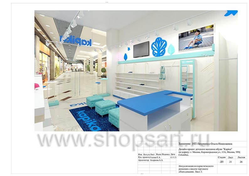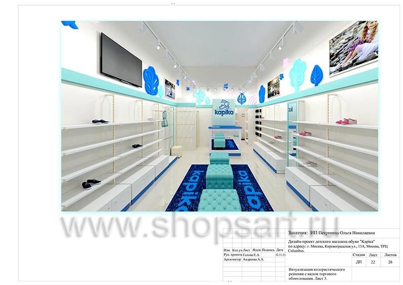 Дизайн-проект детского магазина, по продаже детской обуви и одежды, разработан в соответствии с действующими технологическими и санитарными нормами и правилами.