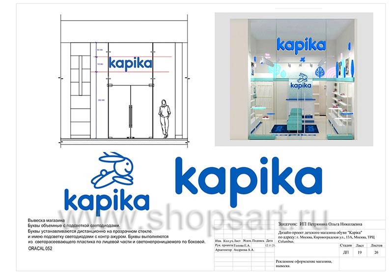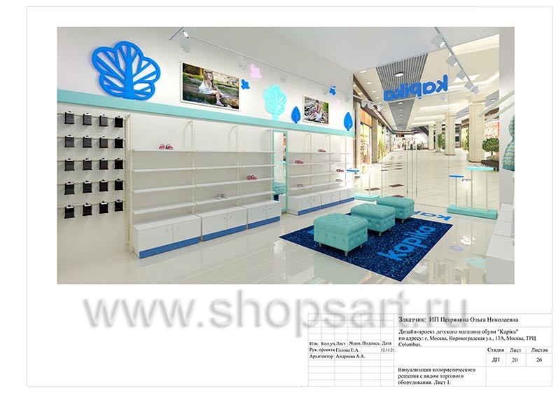 Дизайн помещения детского магазина «Kapika», разработан на основе выбранного стиля компании, с использованием приемов и решений, выгодно преподносящих покупателю модную детскую обувь и одежду.