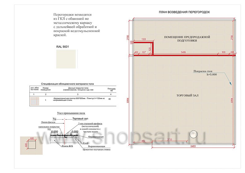 Отделка стен, потолков, полов в торговых залах и на путях эвакуации, предусмотрены дизайн-проектом из негорючих (НГ) или слабо горючих материалов (Г1), а каркасы из негорючих материалов.