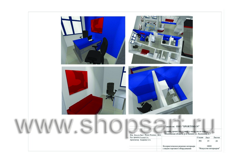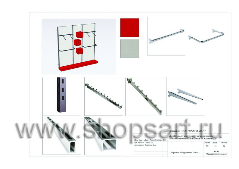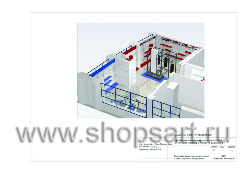 На этой странице Вы можете ознакомиться с дизайн-проектом для магазина спортивной одежды и питания для спортсменов “SPORTSMAN”, находящегося в городе Химки, улица Калинина, дом 7, Московской области, на основе коллекции торгового оборудования «АТЛАНТ”. Разработала дизайн-проект магазина, дизайн интерьера и дизайн торговой мебели компания ООО «Искусство интерьеров». Узнать больше о наших коллекциях мебели для магазина одежды Вы можете на странице оборудования для магазина одежды.