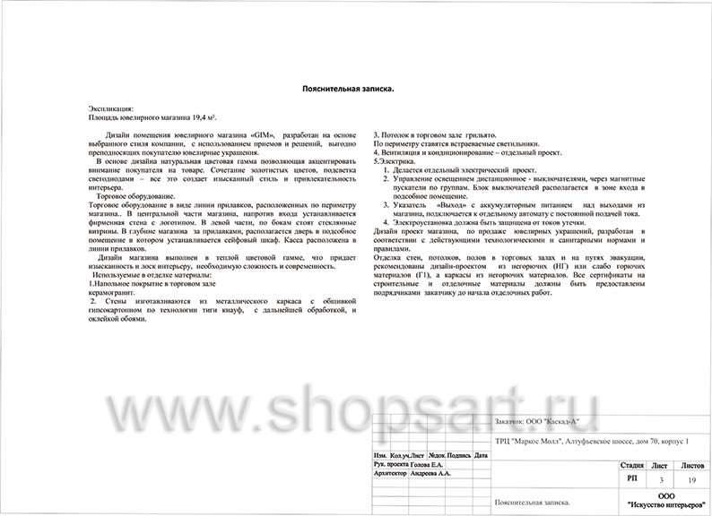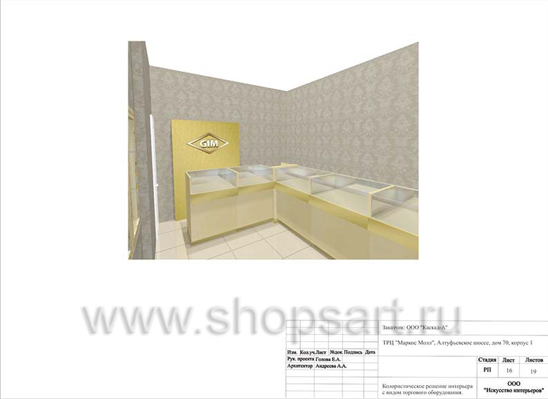 - Дизайн-проект ювелирного магазина “GIM” г. Москва ТДК “Маркос-Молл” на основе коллекции торгового оборудования “СОВРЕМЕННЫЙ СТИЛЬ”. Лист 19.