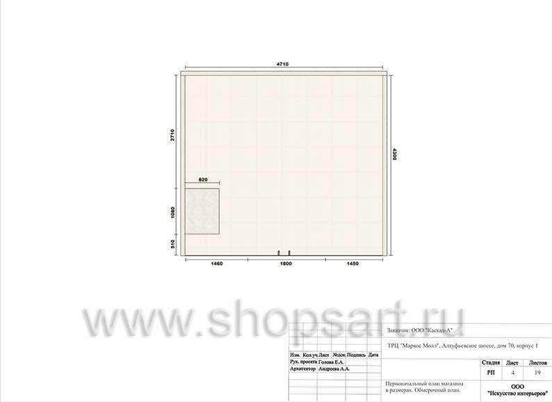 4. Первоначальный план магазина в размерах.