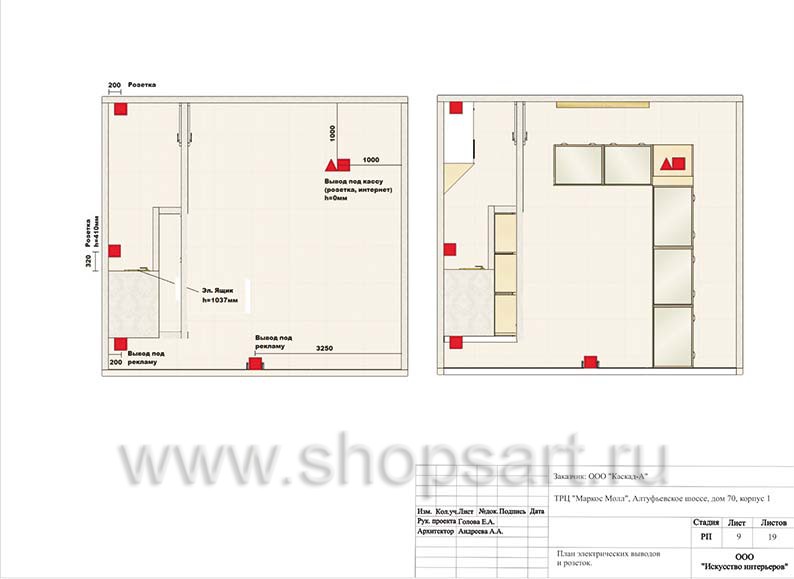 9. План расстановки розеток и электрических выводов.