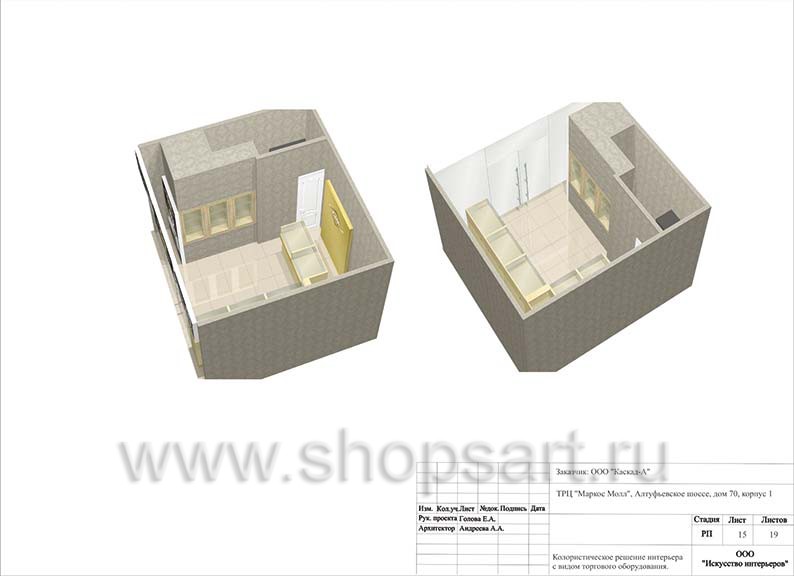 15. Колористическое решение интерьера магазина 2 с видом торгового оборудования.