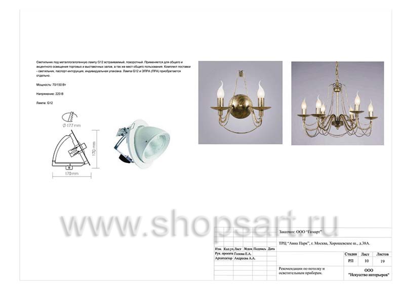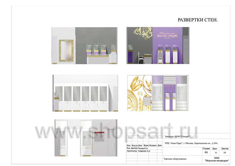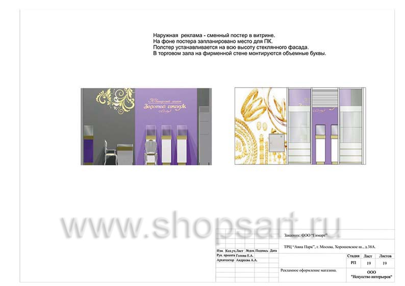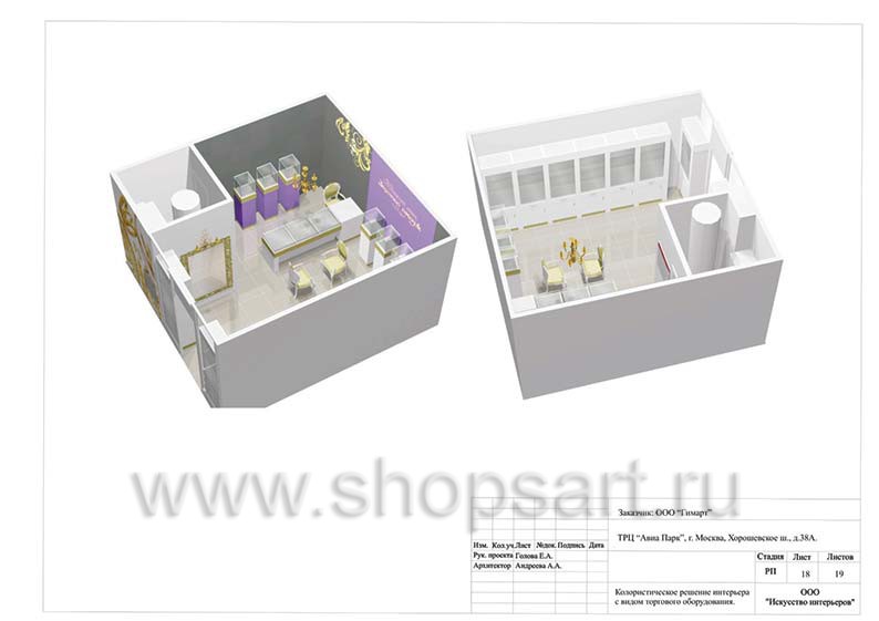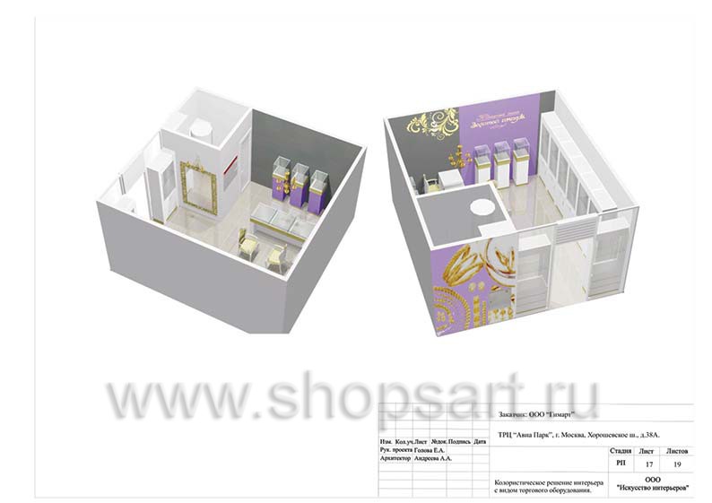 - Дизайн-проект ювелирного магазина “Золотой имидж” г. Москва ТЦ “Авиапарк” на основе коллекции торгового оборудования “СОВРЕМЕННЫЙ СТИЛЬ”. Лист 19.