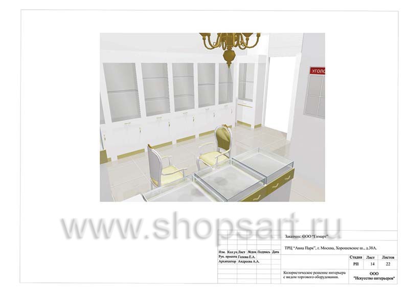 - Дизайн-проект ювелирного магазина “Золотой имидж” г. Москва ТЦ “Авиапарк” на основе коллекции торгового оборудования “СОВРЕМЕННЫЙ СТИЛЬ”. Лист 14.